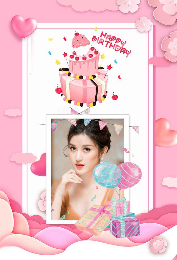 Ghép ảnh vào khung ảnh màu hồng trang trí hoa văn và những hình trái tim đẹp chúc mừng sinh nhật