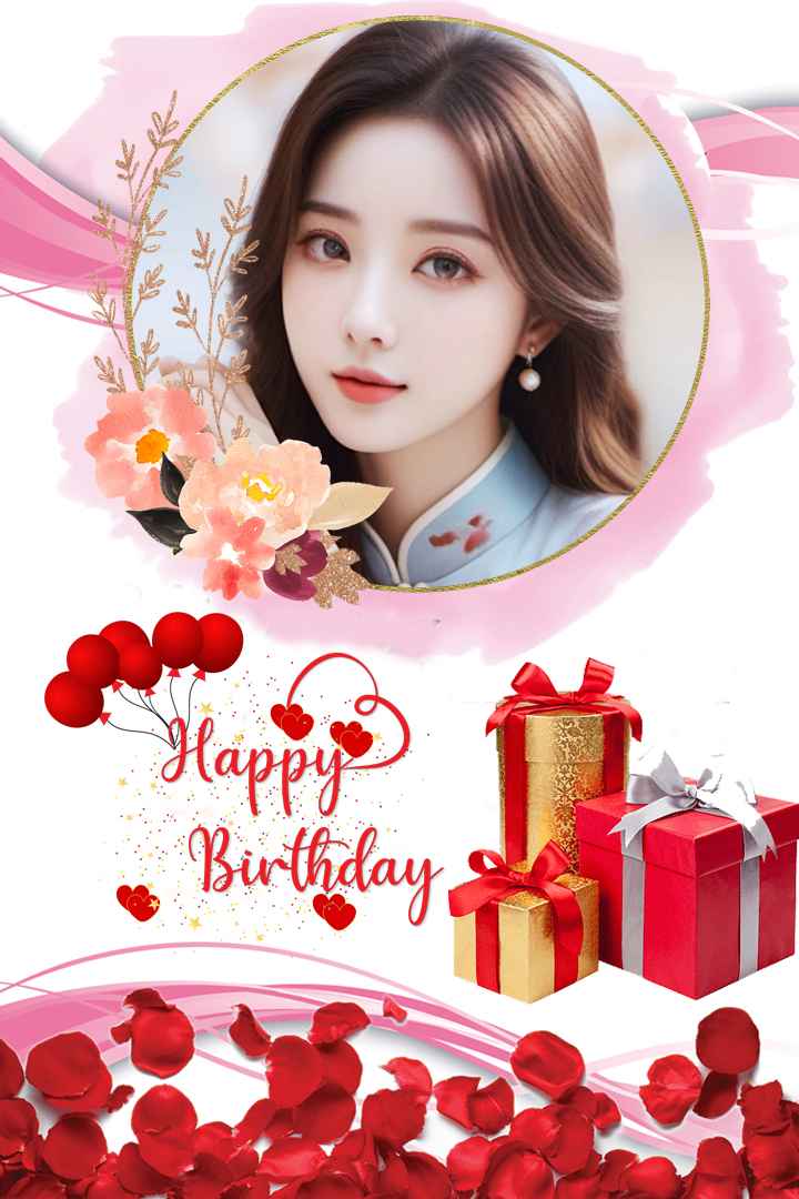 Ghép ảnh với những cánh hoa hồng rực rỡ và những gói quà chúc mừng sinh nhật