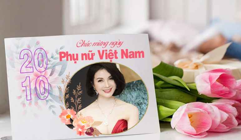 Ghép khung ảnh vói tấm thiệp kết hợp bó hoa tươi thắm chúc mừng ngày 20/10