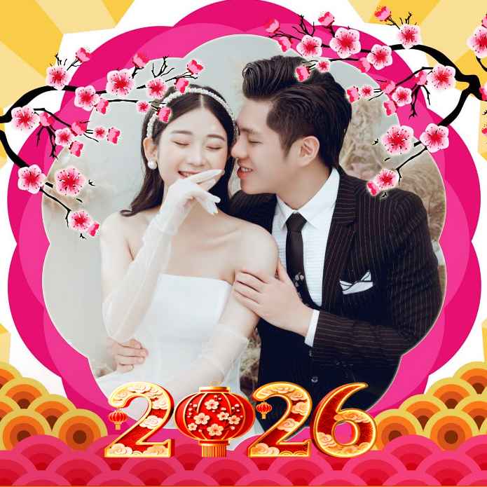 Tạo ảnh ghép làm avata với cành đào tươi thắm chào năm mới 2026