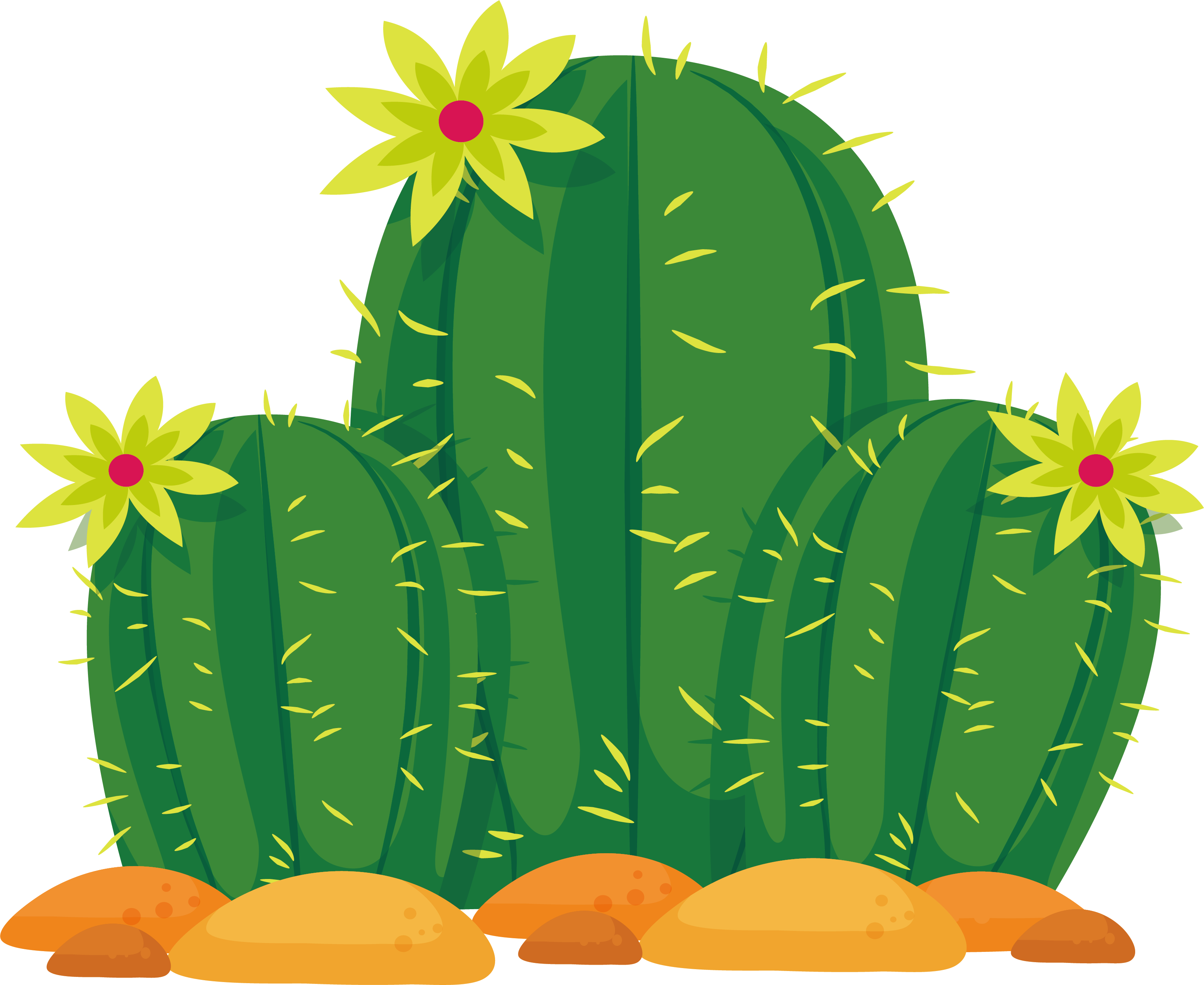 Mẫu thiết kế ảnh vẽ ba cây hoa xương rồng xanh nở hoa tuyệt đẹp