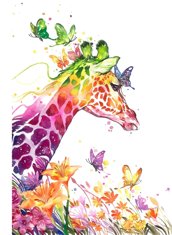 Mẫu thiết kế vẽ phác họa chú hươu cao cổ với nhiều màu sắc nghệ thuật