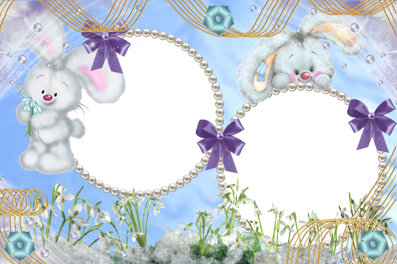 Mẫu thiết kế khung ảnh ghép 2 hình với thỏ trắng nghệ thuật